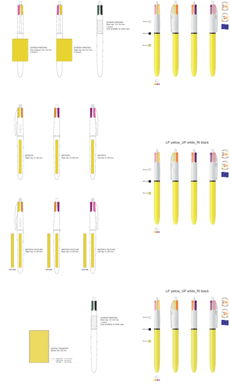 4 modische Farben in einem Scheibgerät, inklusive 2 neuer Farben: Orange und Gelb mit einem sonnigen Schaft. Vollfarbdruck in höchster Qualität – mit BritePix Digital. Unser legendärer BIC® 4 Colors® wird nachhaltiger, jetzt mit 13 % weniger Kunststoff im oberen Bereich!