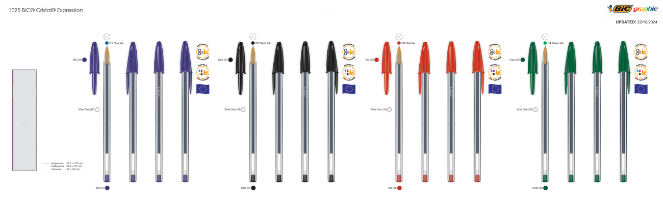 Erlebe die Weiterentwicklung des ikonischen BIC® Cristal® mit BIC® Cristal® Expression. Dieser klassische Stift vereint nun zeitloses Design mit der hochmodernen BritePix™ Digitaldrucktechnologie und bietet einzigartige Personalisierungsmöglichkeiten. Wähle aus vier lebhaften Tintenfarben—grün, blau, schwarz und rot—und hinterlasse einen bleibenden Eindruck mit einem Stift, der deinen einzigartigen Stil wirklich widerspiegelt. Verwandle die Botschaft deiner Marke auf einer leeren Leinwand mit grenzenlosen Anpassungsmöglichkeiten. BIC® Cristal® Expression.