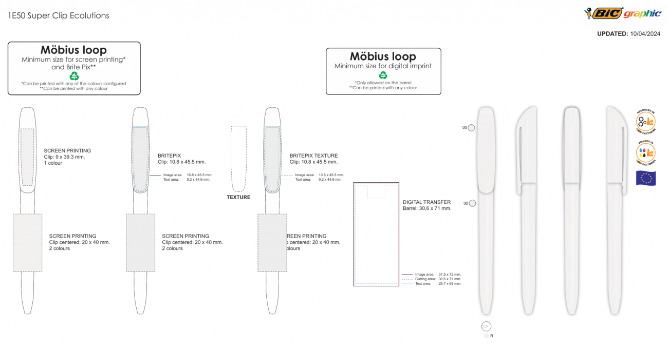 Holen Sie mit dem britePix™-Vollfarbdruck alles aus der großen Druckfläche auf dem Clip heraus. Jetzt auch mit dem neuen britePix™ Texture erhältlich, das Ihrer Botschaft einen Relief-Effekt verleiht!